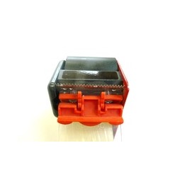Je vyroben z masivního kovového rámu s plastovým madlem, jeho předností je gumový váleček usnadňující lepení pásky.